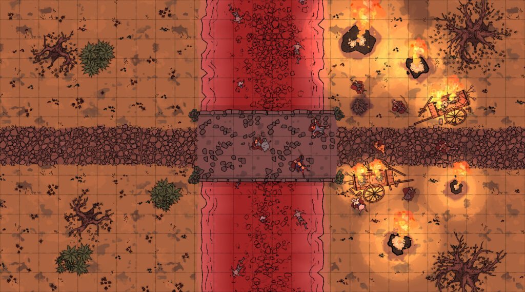 Inside the settlement they discovered chaos. A group of thugs and bandits had turned on one another under the Blood Moon’s influence. During the conflict the party aided Elfi, a halfling druid who had been investigating the strange corruption spreading through the region.